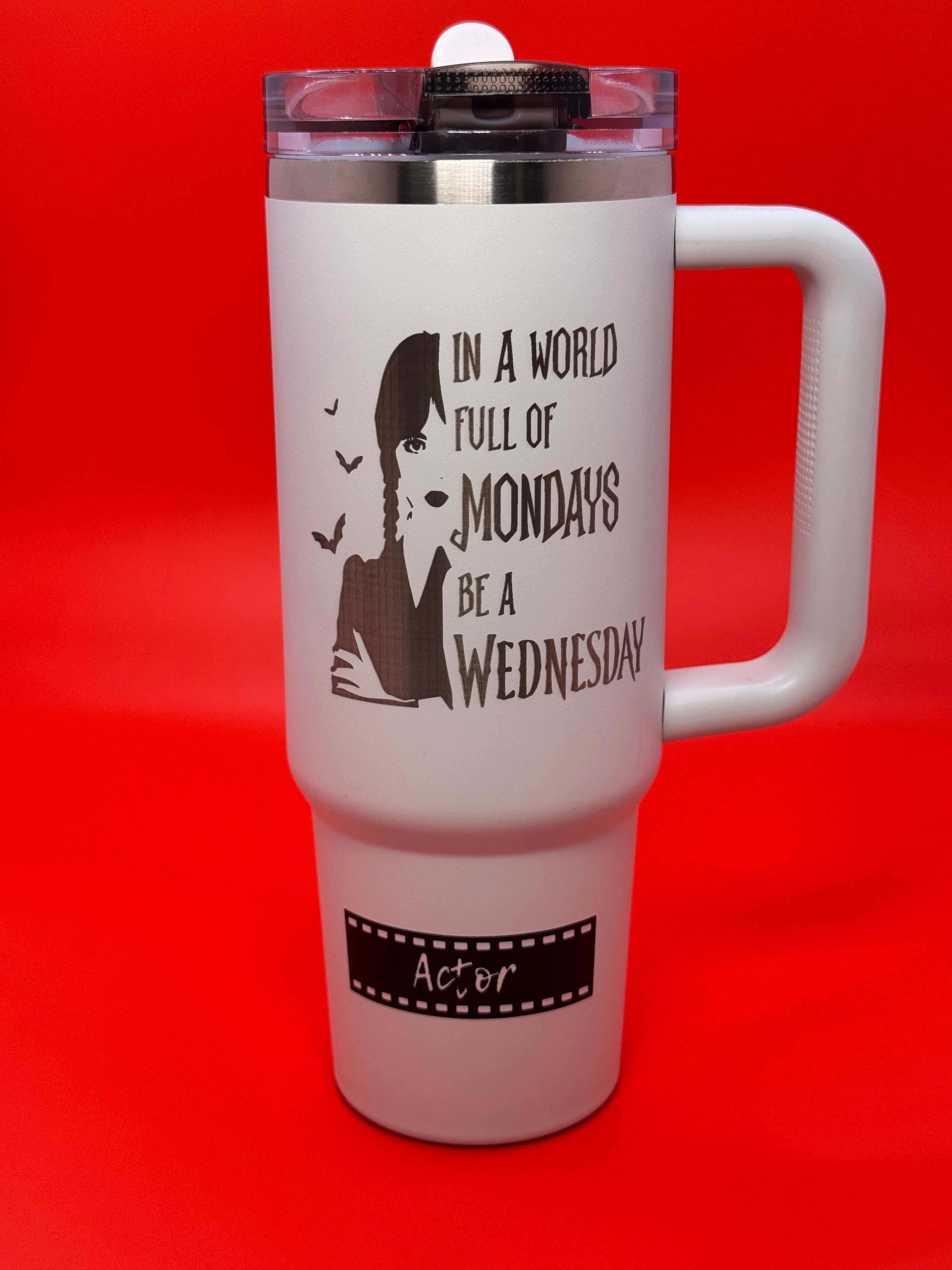 A Wednesday Addams által inspirált ACTOR kulacs a különcség, a sötét elegancia és az önazonosság jelképe. Egy gravírozott dizájn, amely nem követi a trendeket, hanem saját világot teremt. Prémium rozsdamentes acélból készült, hogy minden korty ugyanolyan karakteres legyen, mint Wednesday maga.